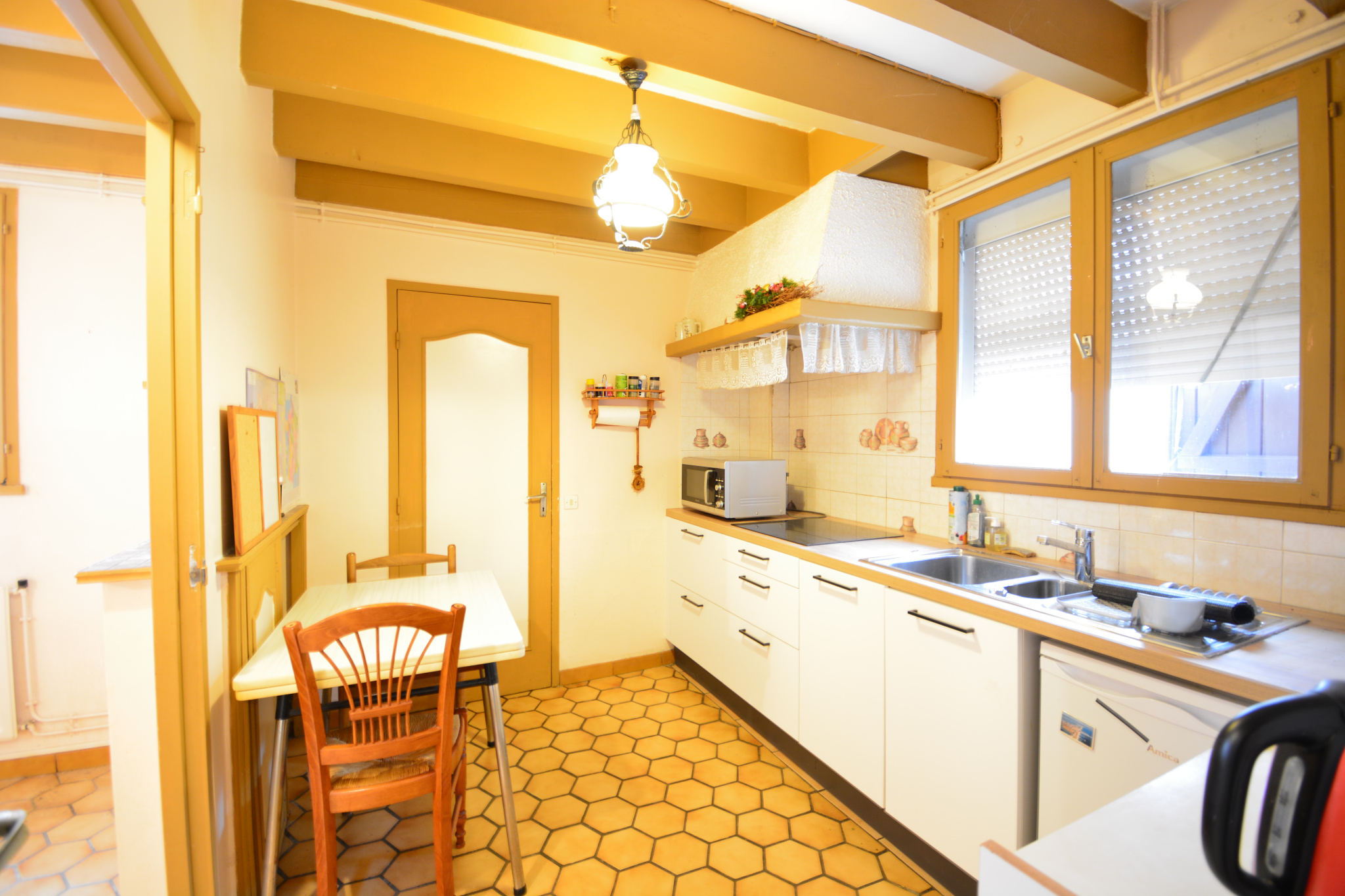 Une cour,une terrasse et un garage complètent ce bien.