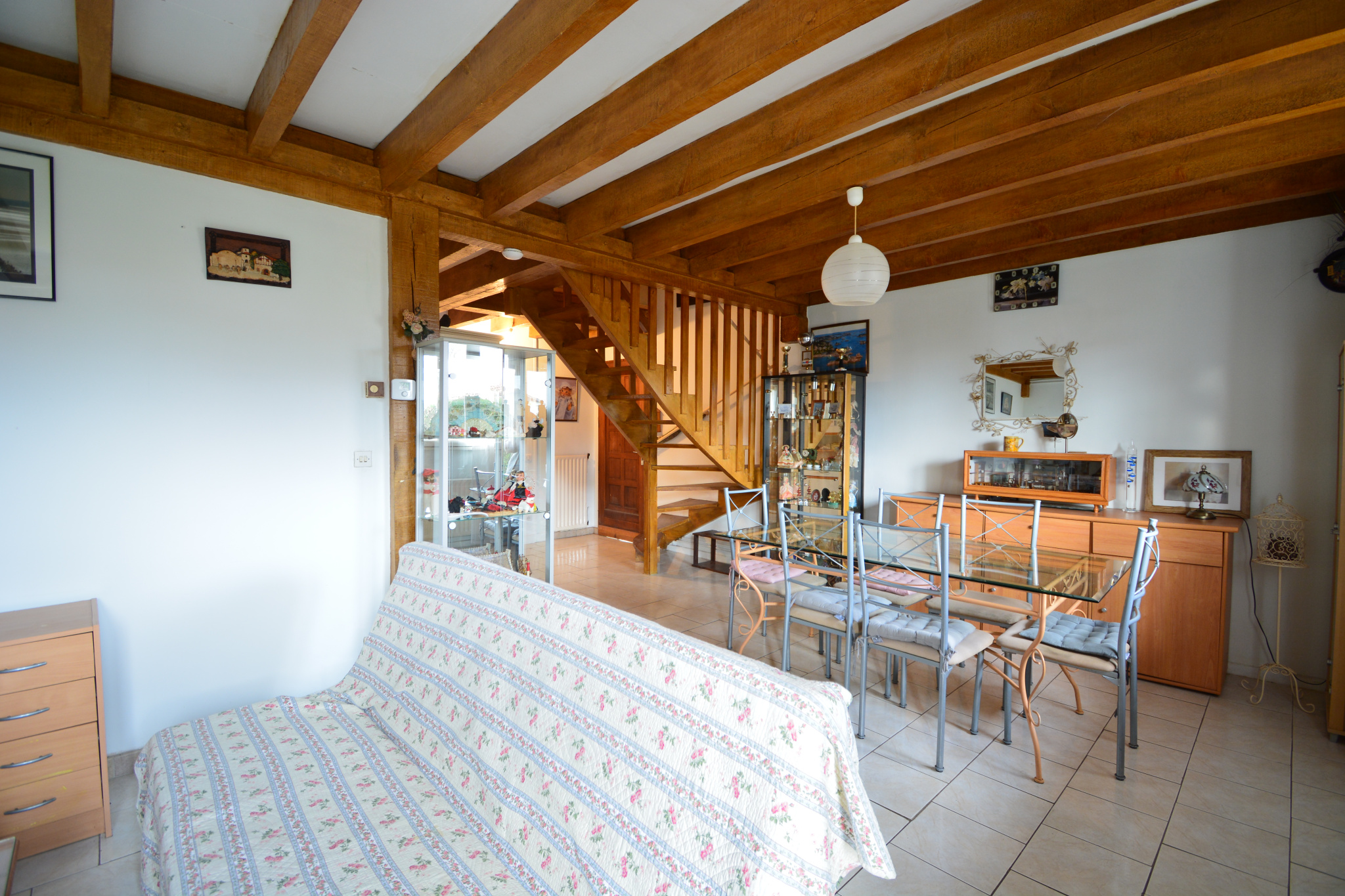 A l'étage: 3 chambres, une salle de bains.