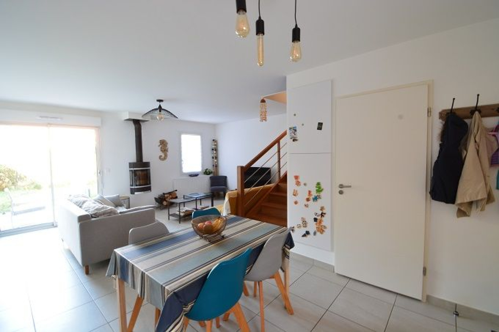 EN EXCLUSIVITé Venez découvrir à USTARITZ , QUARTIER ARRAUNTZ, cette maison mitoyenne de 2018 proche d'une école, dans un agréable quartier composée: Au rez de chaussée: d'une pièce de vie (chauffée par un poêle à bois) avec cuisine ouverte d'une salle d'eau avec WC , grande terrasse et jardin d'environ 100m². A l'étage: trois chambres et une salle de bains avec WC. Un garage et une place de parking privative complètent ce bien. Possibilité d'agrandir la pièce à vivre en condamnant le garage et en utilisant les 15m² de celui-ci.