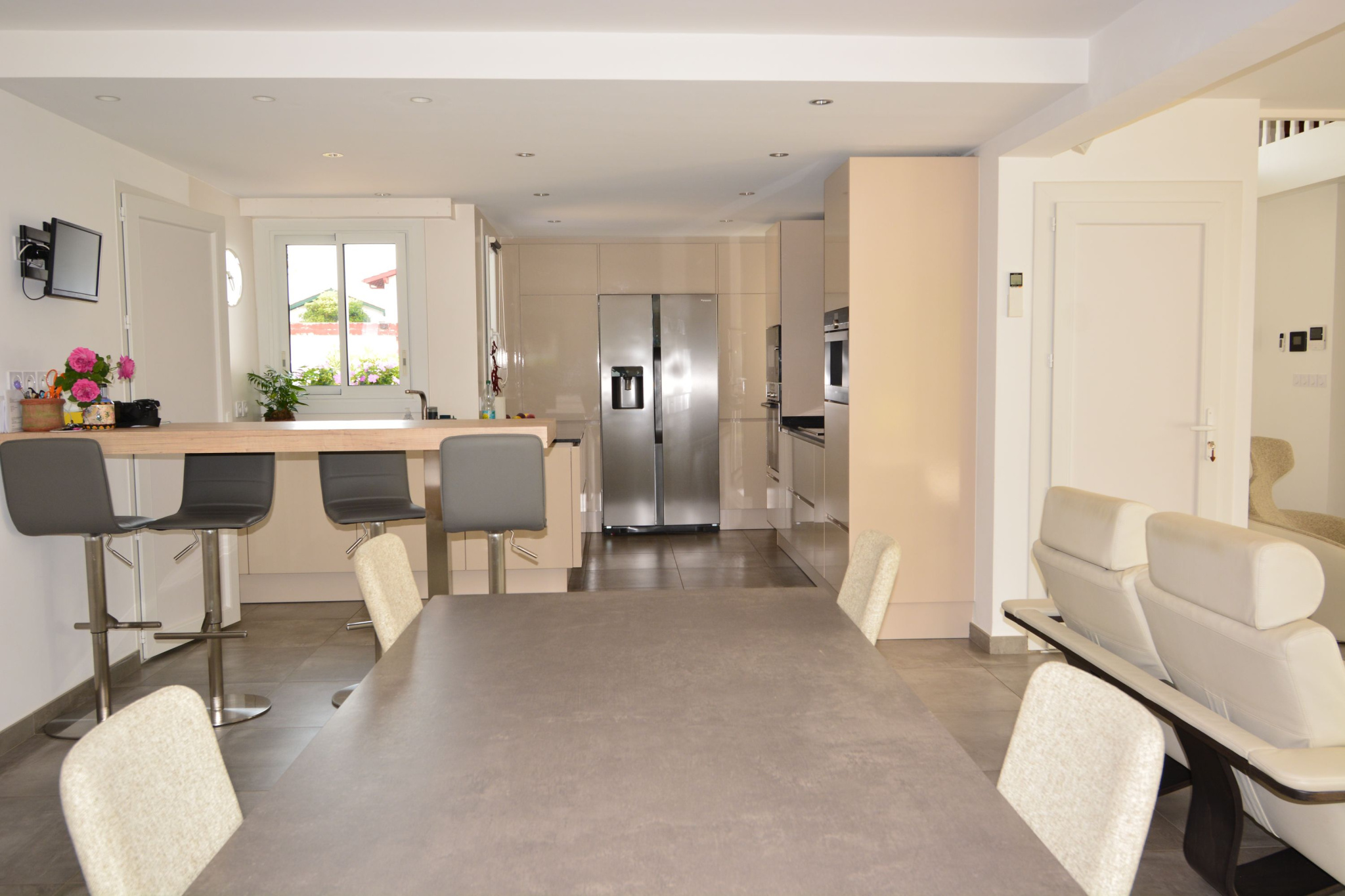 EXCLUSIVITE Dans un quartier recherché de Cambo Les Bains, maison d'architecte contemporaine de 200m² comprenant: Au RDC: un grand séjour avec cuisine ouverte,une suite parentale avec vue piscine ,WC suspendu et un studio indépendant. A l'étage: une mezzanine avec toit cathédrale, 3 grandes chambres dont une avec sa salle d'eau privative, salle de bains (douche et baignoire) et WC suspendu Cette magnifique maison offre 2 modes de chauffage: climatisation réversible et poêle à granulés. Domotique: alarme, surveillance à distance, fermeture et ouverture des volets roulants à distance. Les plus de cette maison: Une cave enterrée sous la maison Un double garage avec Wall box Une piscine 8x4 avec dôme coulissant Un abri de jardin avec électricité