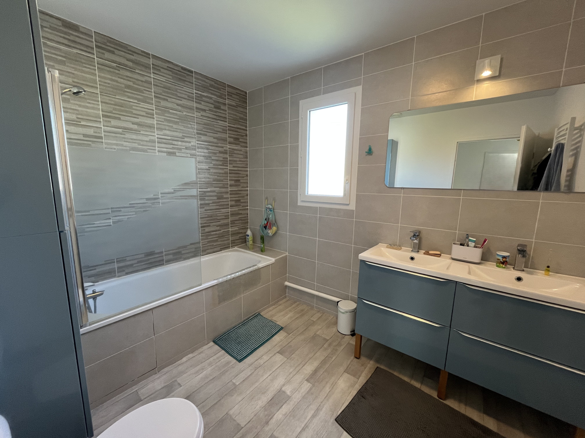 D’une surface habitable de 91,52 m², elle propose un rez-de-chaussée bien pensé, avec une entrée accueillante, un WC indépendant, et surtout une très belle pièce de vie d’environ 40 m². L’espace salon/salle à manger, baigné de lumière, s’ouvre sur une cuisine ouverte moderne et entièrement équipée, créant une ambiance conviviale. L’ensemble donne accès à une agréable terrasse de 25 m² exposée Est, prolongée par un petit jardin clos, parfait pour profiter des beaux jours.