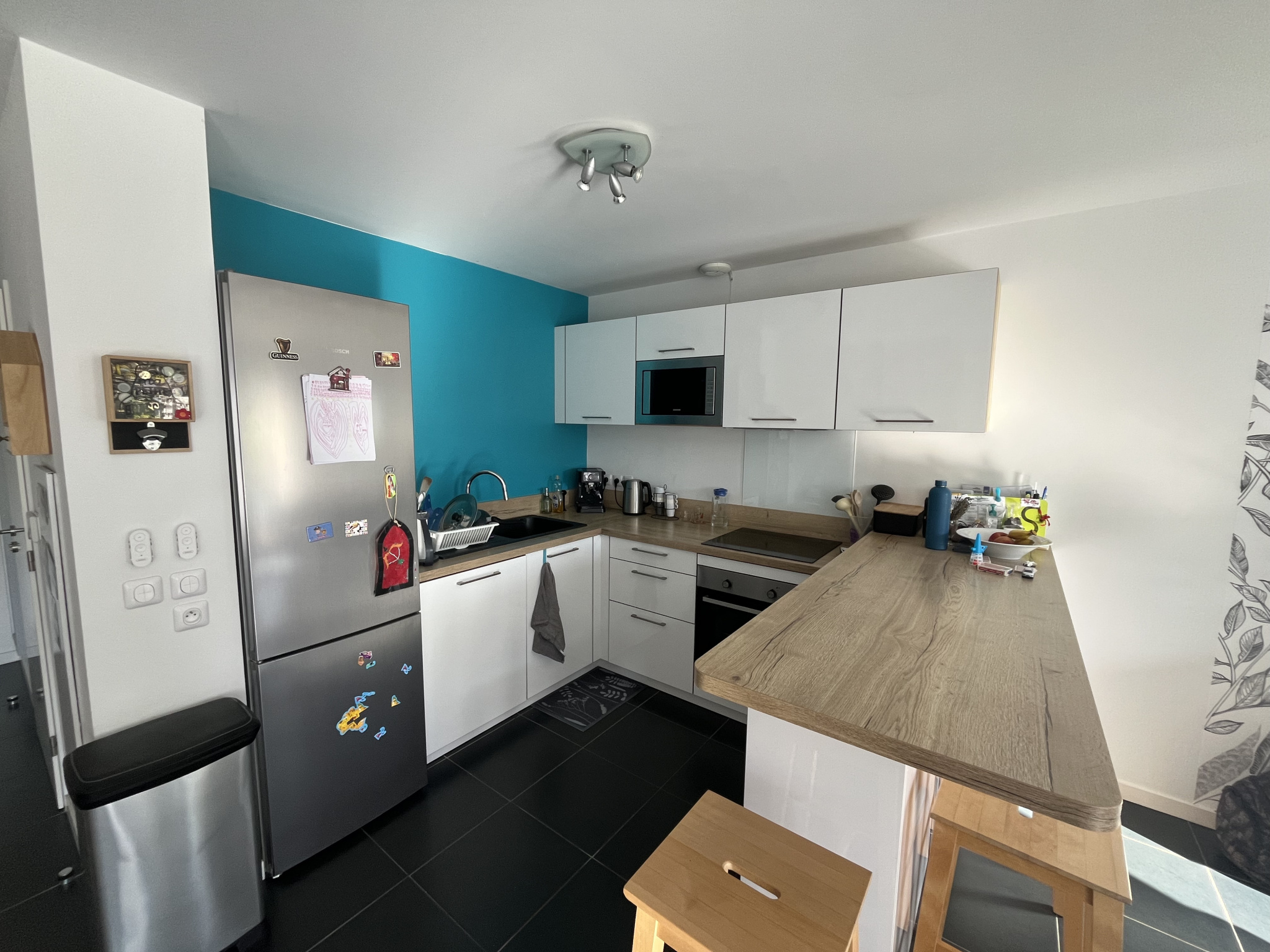 La maison dispose d’un garage privatif au rez-de-chaussée et de deux places de stationnement extérieures. Elle est chauffée au gaz de ville et fait partie d’une copropriété récente à faibles charges, avec syndic professionnel.