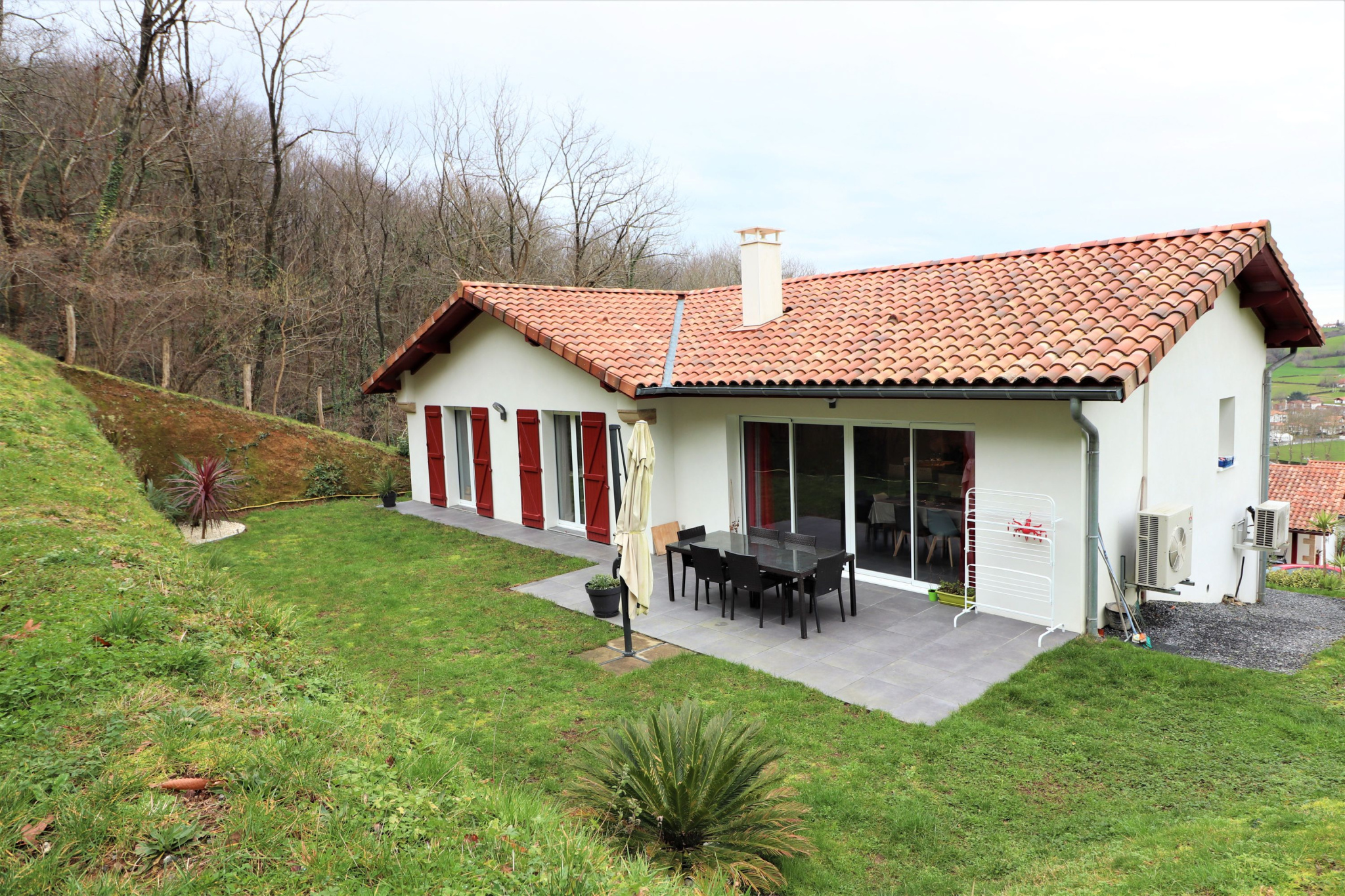 HASPARREN-EXCLUSIVITE LANKIDEAK Belle maison individuelle de 110m² au sol se composant d'un grand espace de vie lumineux et exposé sud. Une cuisine équipée et de qualité ouverte, un cellier et rangement à l'entrée. Un couloir dessert 3 chambres dont une suite parentale avec son dressing et sa salle d'eau. Une salle de bains supplémentaire complète le niveau. Vous trouverez également un sous-sol total de plus de 100m² avec nombreux espaces de rangements et une véritable cave! A l'extérieur, un beau jardin paysagé avec terrasse, poulailler et une piscine hors-sol. Maison de 2015 avec chauffage au sol, climatisation réversible et également de nombreux matériaux de qualité! Aucun travaux à prévoir, Bien rare sur le secteur