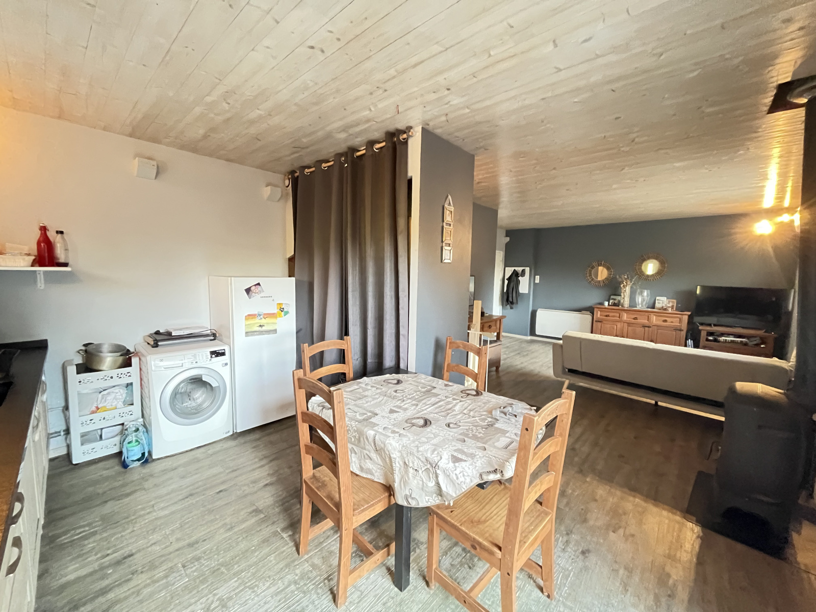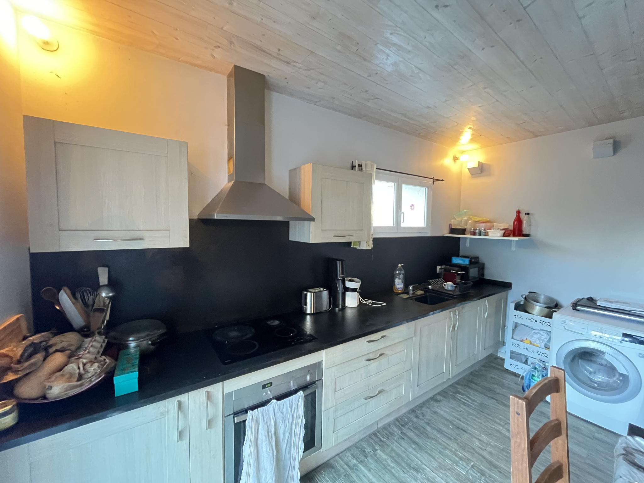 A l'étage le palier distribue deux chambres dont une avec sa mezzanine pour une superficie totale de 25m²! Une salle de bains et un wc complète le bien.