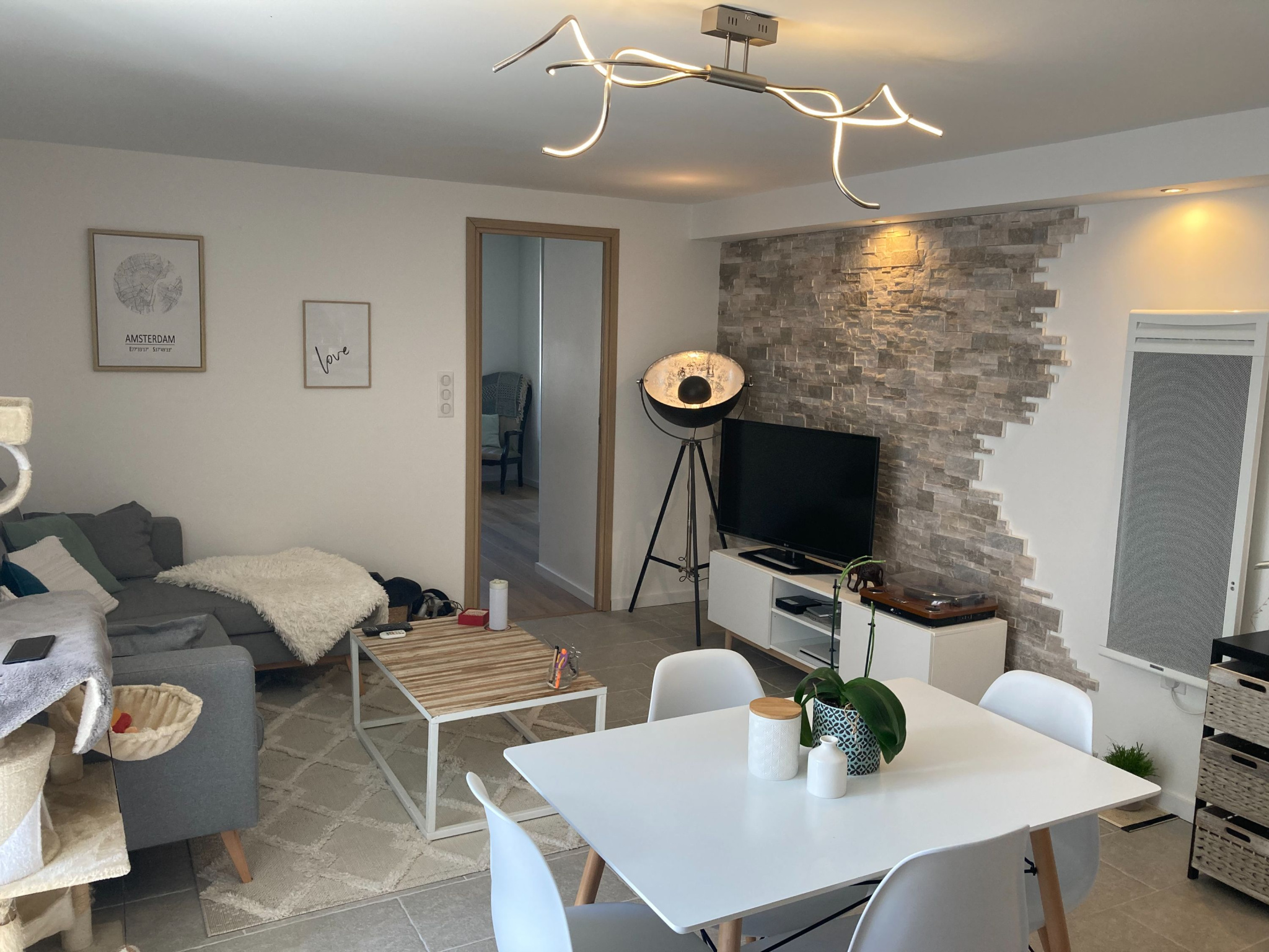 EXCLUSIVITE- HASPARREN Situé en plein centre-ville, bel appartement de type T3 de 74.67m² loi CARREZ. Au premier étage, il est composé d'une entrée ouverte sur un grand salon/salle à manger avec cuisine ouverte et équipée pour une suerficie total de 30m²! Vous trouverez également deux belles chambres dont une suite parentale avec son dressing et sa salle de bains privative. A côté de la seconde chambre se trouve une salle d'eau et un wc séparé Un balcon filant sur le salon exposé Ouest et un cellier avec accès direct depuis le palier de l'immeuble complètent le bien. L'appartement dispose d'une rénovation complète avec un choix de matériaux de qualité ! Copropriété de 37 lots dont 28 principaux. Le syndic n'est pas en procédure, les charges de copropriété sont d'environ 50€/mois. Visite virtuelle disponible via notre site internet : www.lankideak.com Véritable appartement coup de coeur!