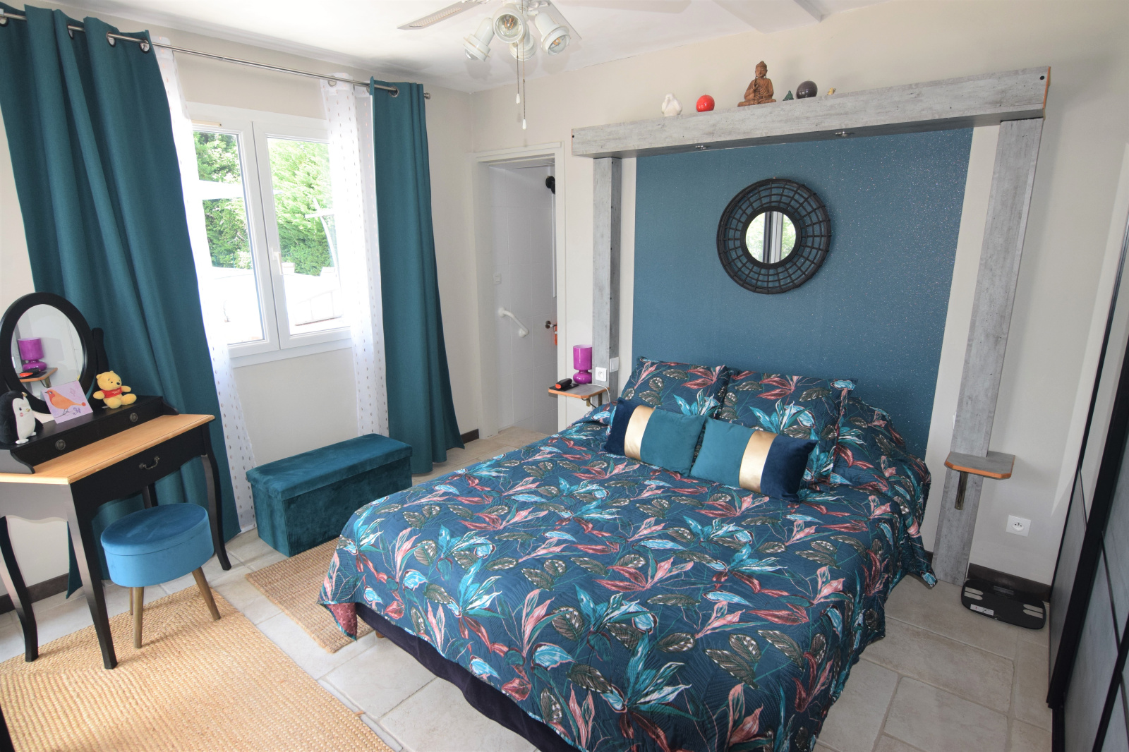 La rénovation de cette villa a été faite avec de nombreux matériaux de qualité (double vitrage aluminium, volets roulants électriques, chauffage au sol par pompe à chaleur, climatisation réversible, liner de piscine neuf, cuisine neuve, ravalement de façade de 2021, borne de recharge pour véhicule électrique, fibre optique).