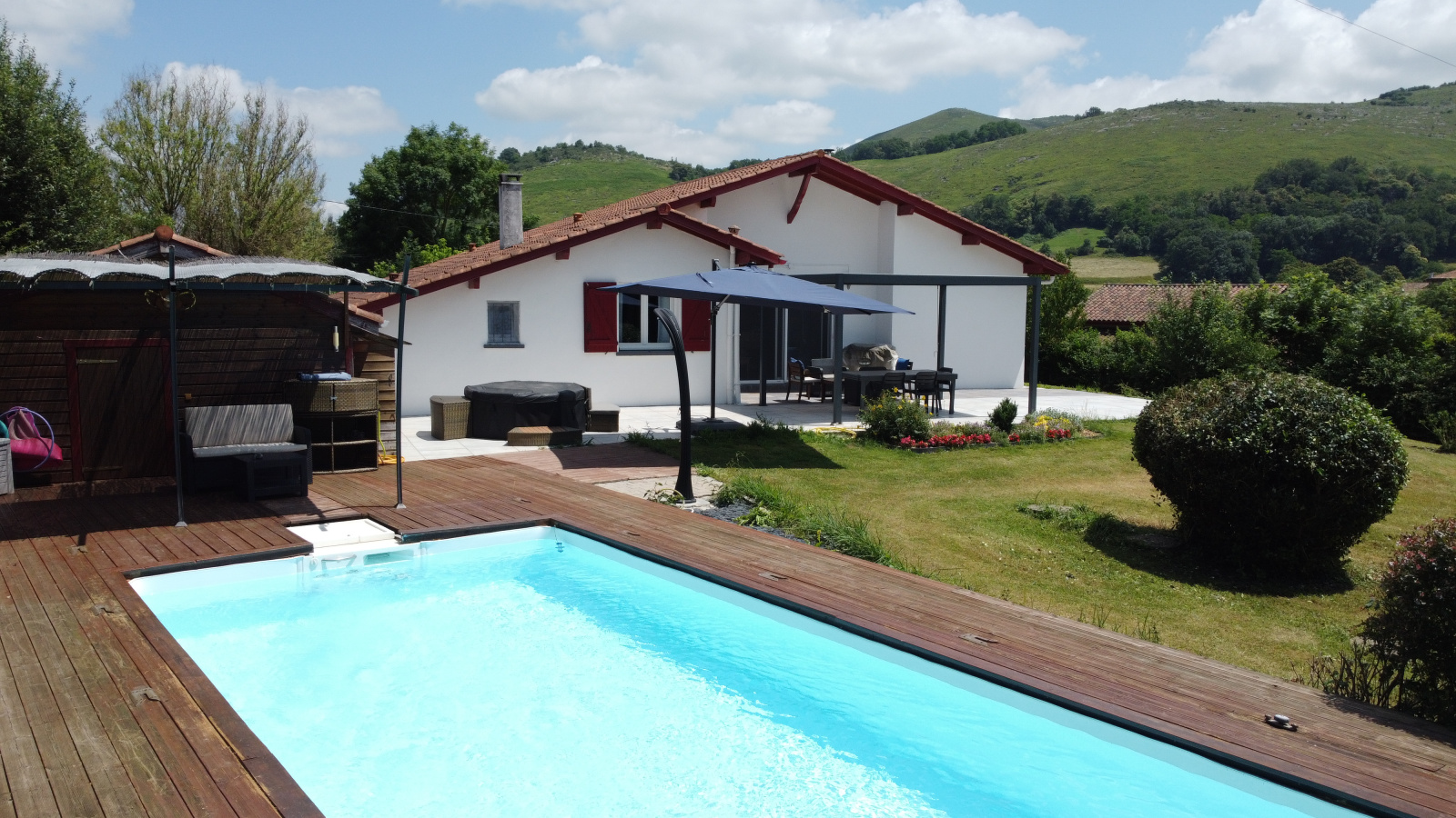 Située proche d'Hasparren, cette maison de plain-pied entièrement rénovée développe une superficie d'environ 120m².
